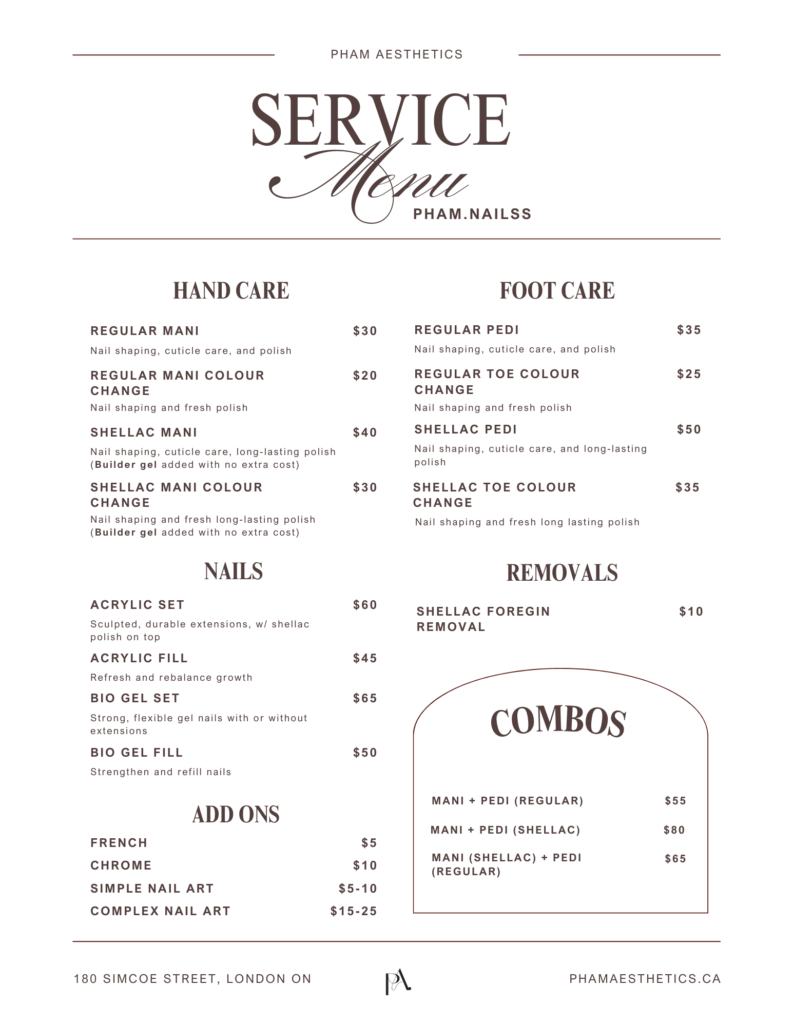 The best way to reach us is through Instagram at @pham.aesthetics via direct message. You can also email us at pham.aesthetics.corp@gmail.com if you prefer or have more detailed inquiries.